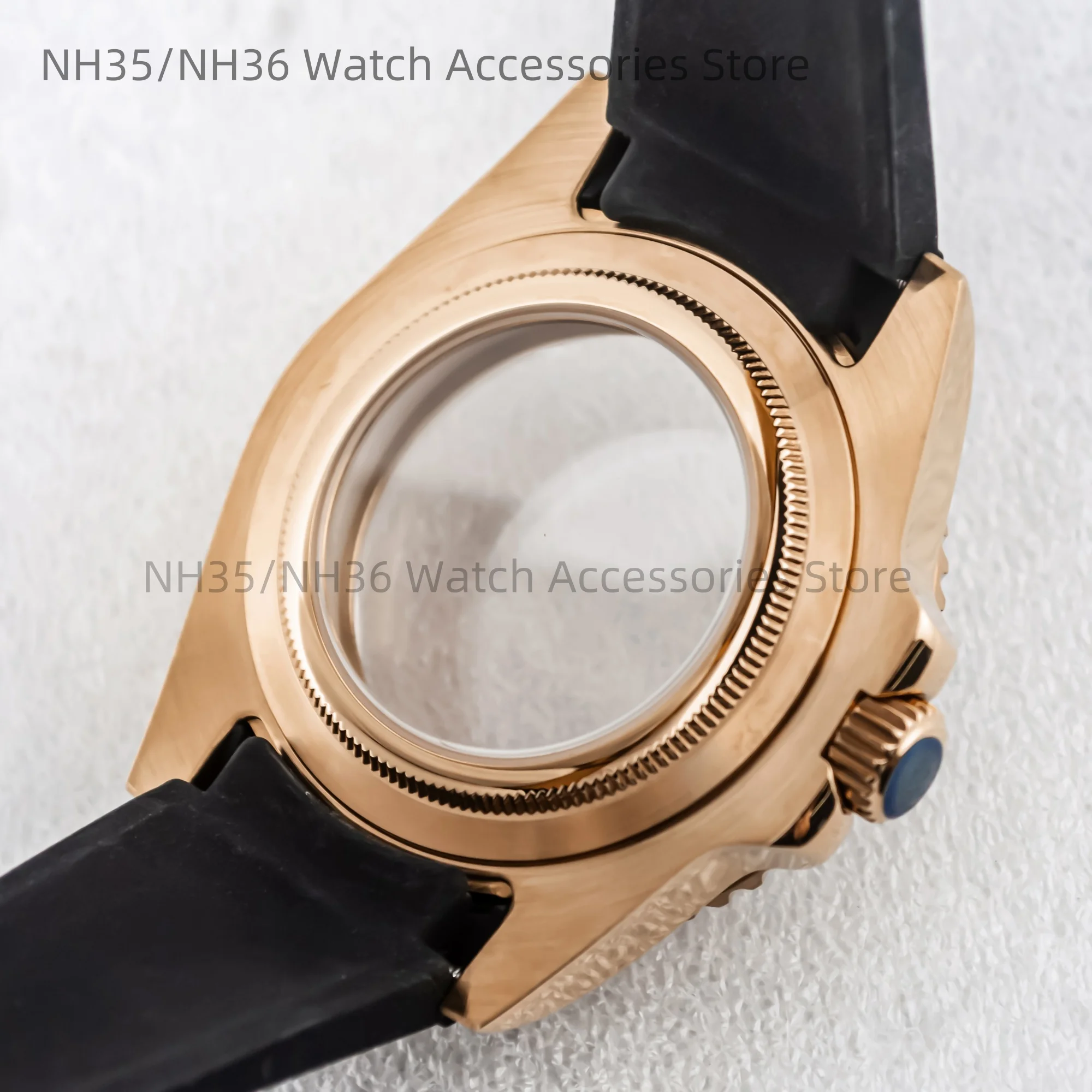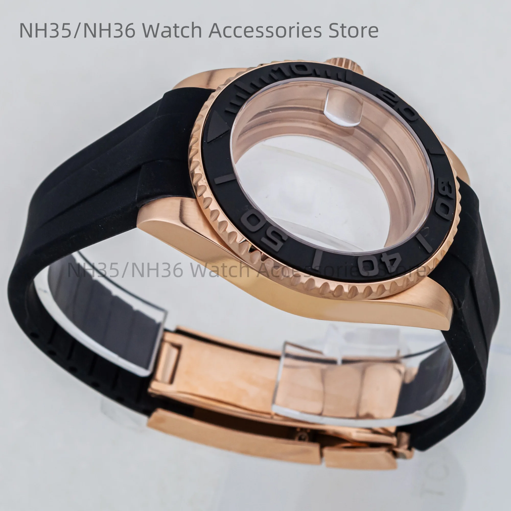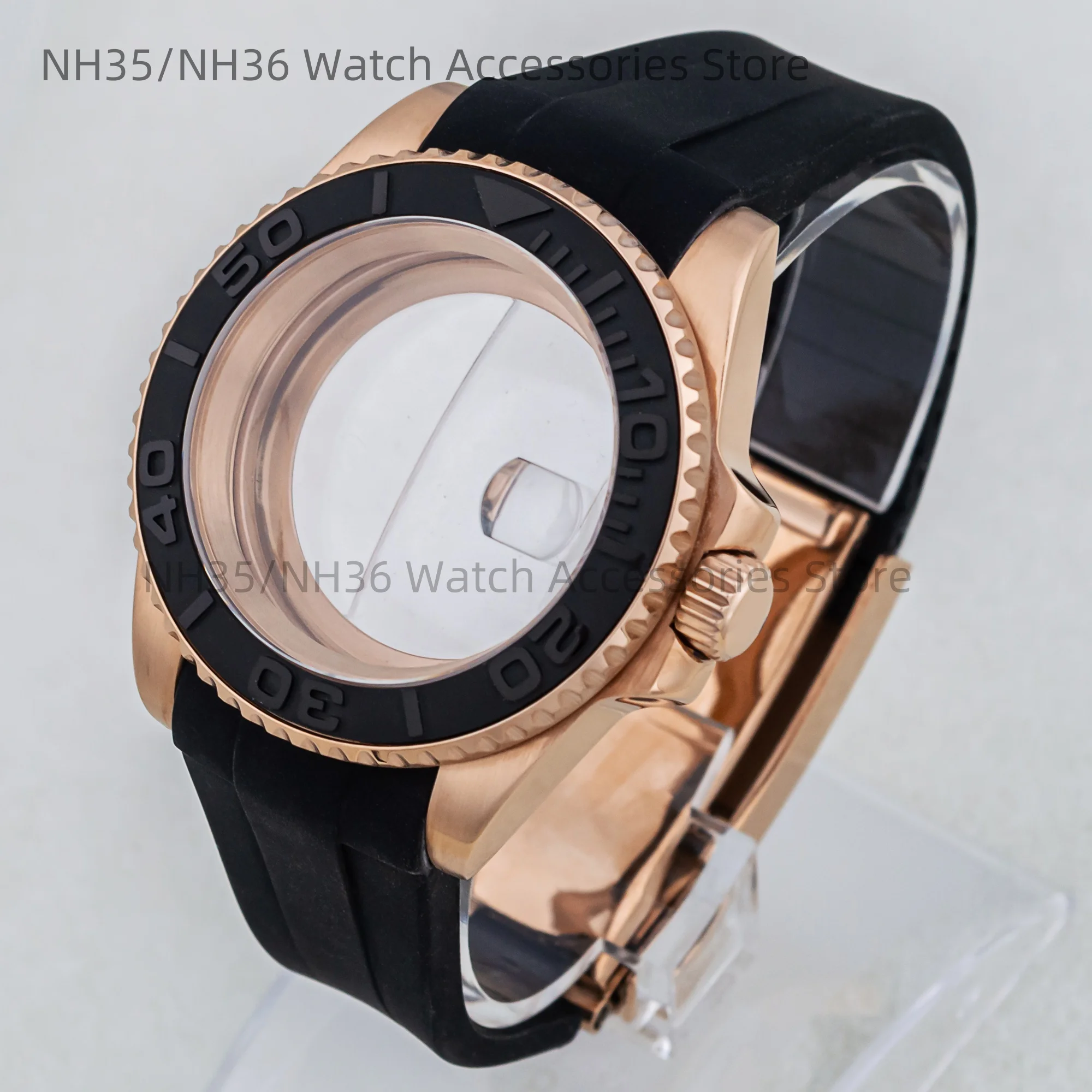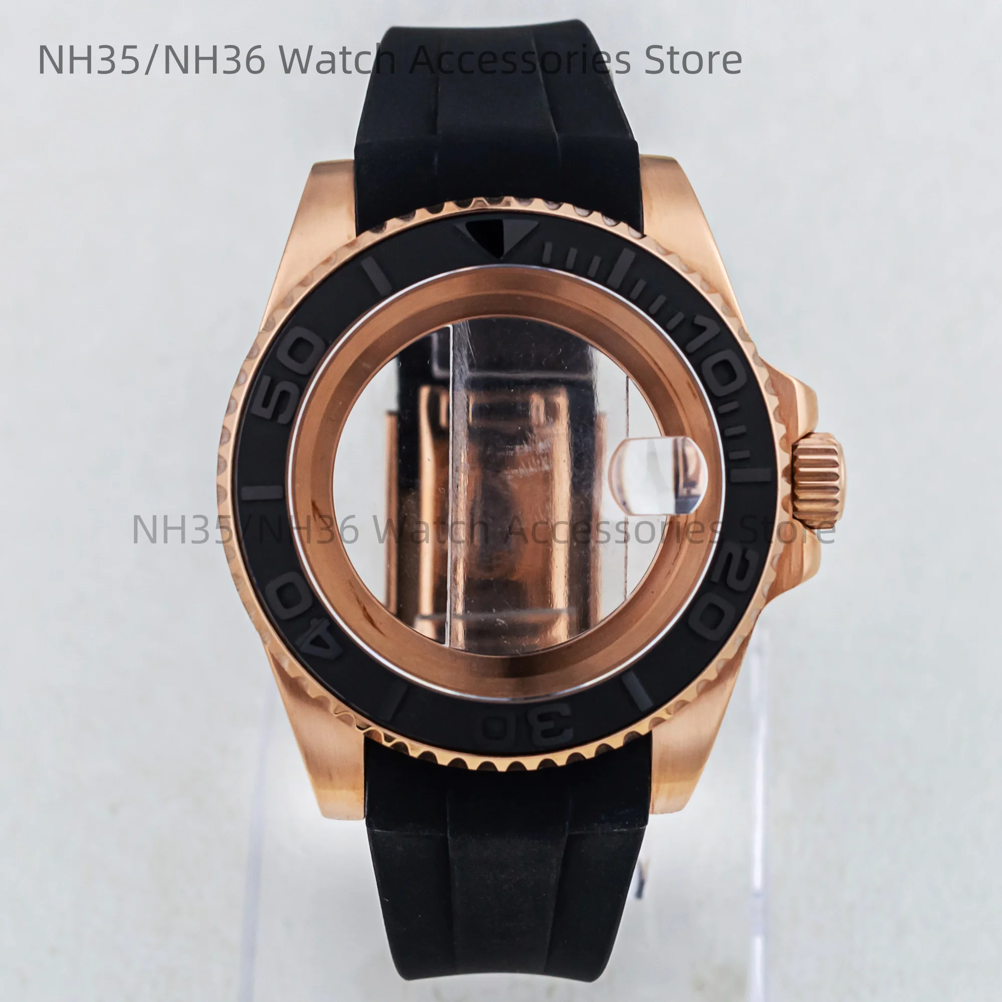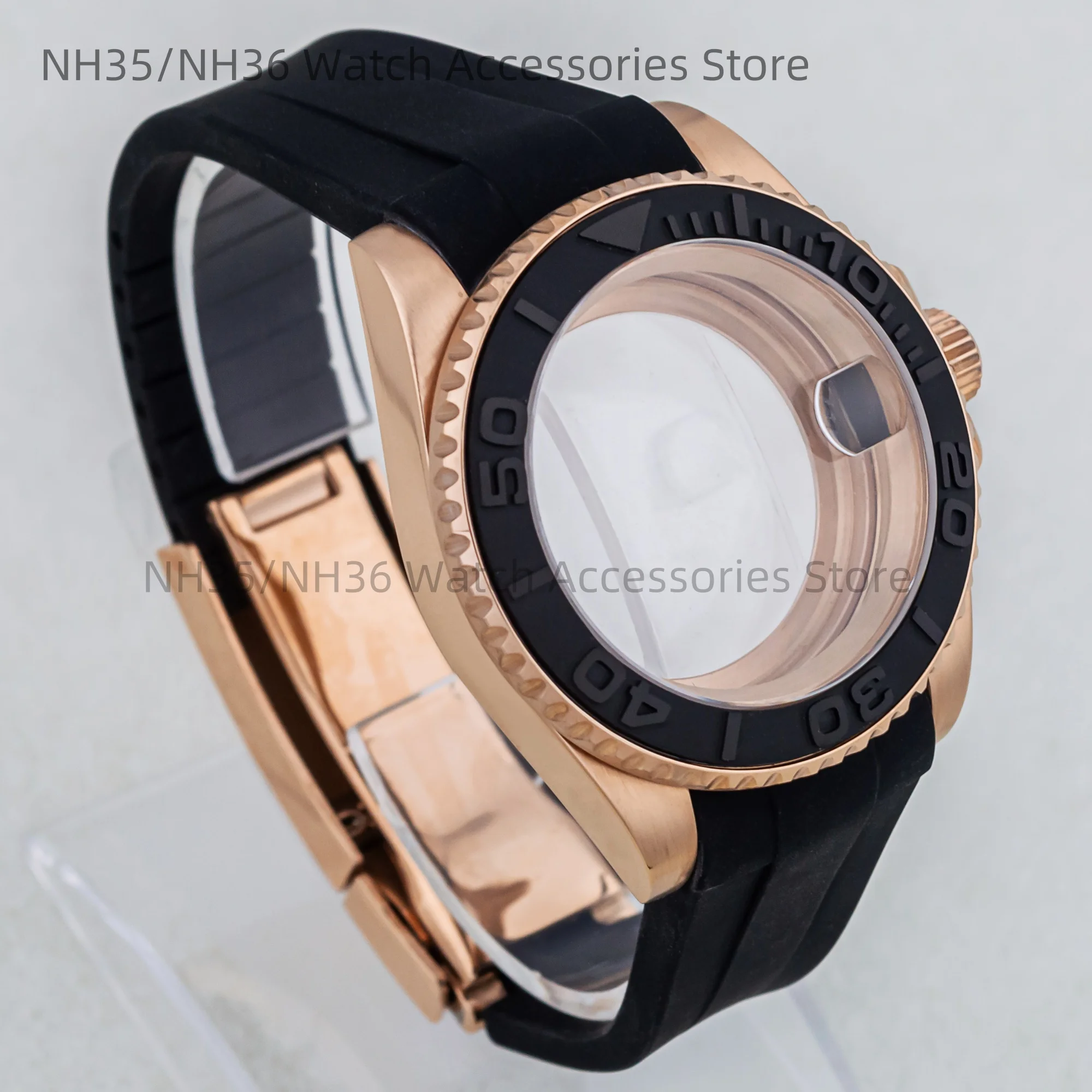 40Mm Rose Gold Watch Case Ceramic Bezel Sapphire Glass Stainless Steel for NH35 Nh36 Nh34 Automatic Movement Yacht-Master Case