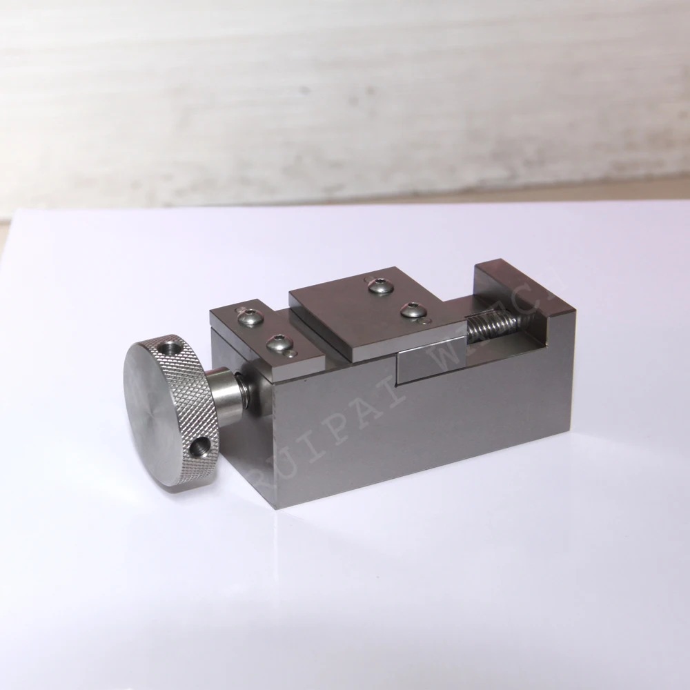 This link fitting tool was specially designed to fit RLX Jubilee and Oyster-style watch bracelet links. When you need to size your watch down or add more links for a better fit, this tool will help to fit the links back together after a repair or replacement is finished. Place the bracelet in the tool and the vise grip will tighten the link back together as use the turning knob. This high quality tools is made of stainless steel and comes with a pry bar for extra torque.