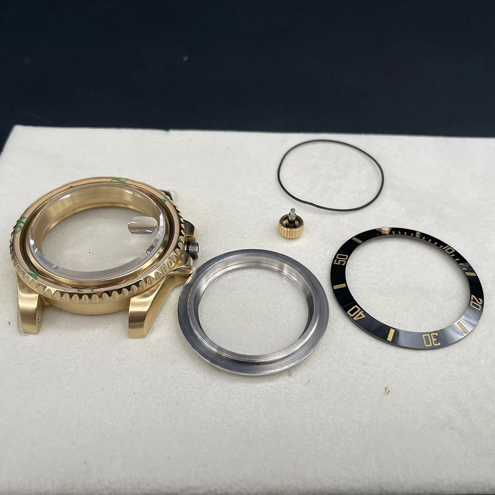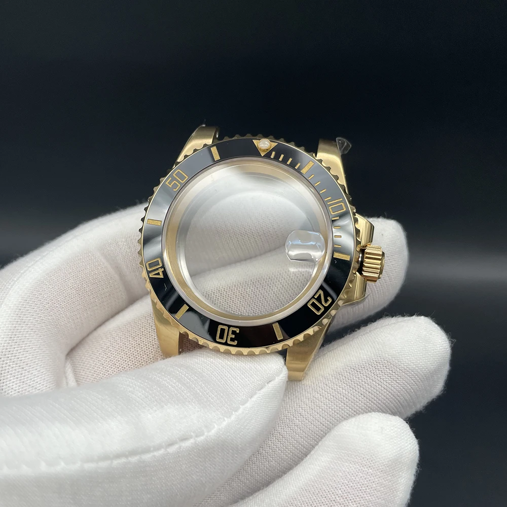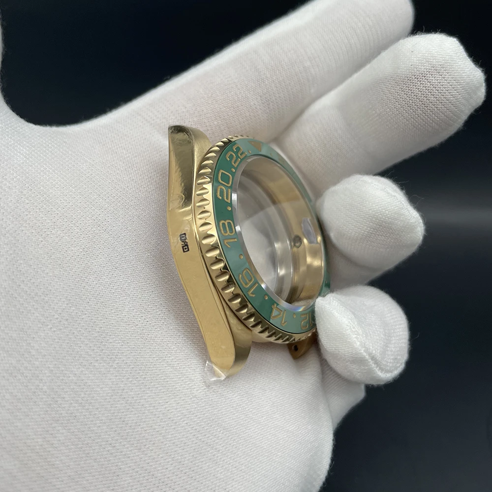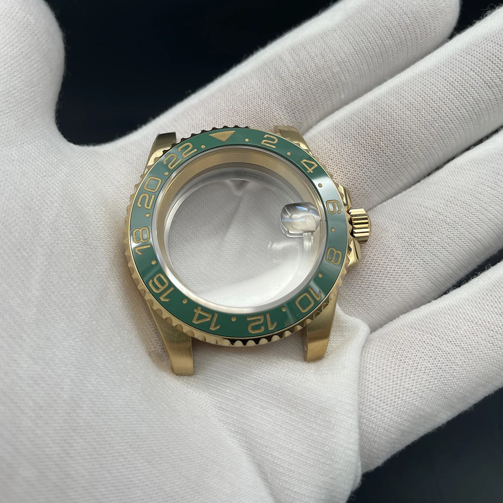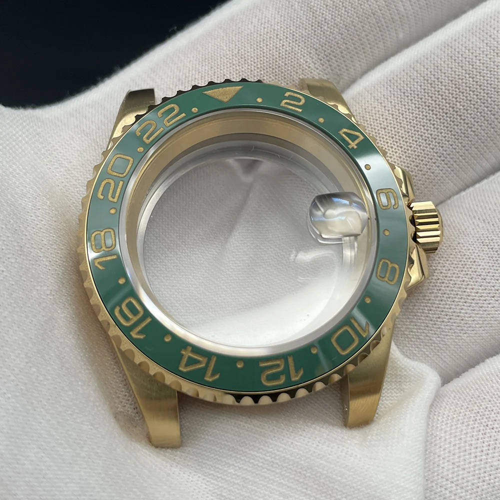 Luxury Golden Watch Case 40Mm Rlx GMT Green Ceramic Bezel Inserts Suit for MOD/SUB Seiko NH35/NH36 3135 Movements Compatible