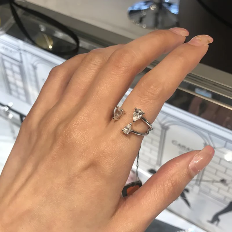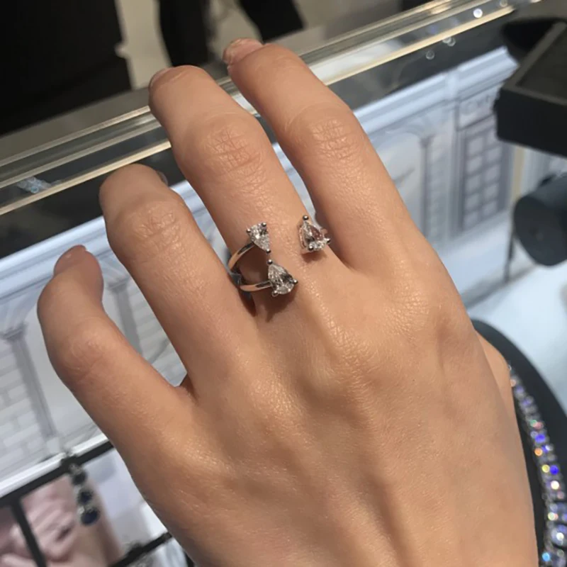 Solid Au750 18K White Gold Ring DVVS1 1.5Ct Pear Moissanite Diamonds Open Ring Luxury Wedding Party Engagement Ring